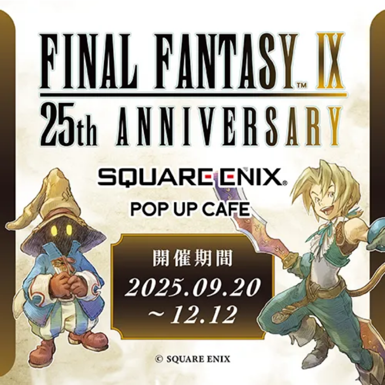 2025年9月20日(土)にオープンする期間限定コラボカフェ『SQUARE ENIX POP UP CAFE』では、オープン第1弾として、今年25周年を迎えた『ファイナルファンタジーIX』のコラボを、2025年9月20日(土)~2025年12月12日(金)の期間にて実施します。