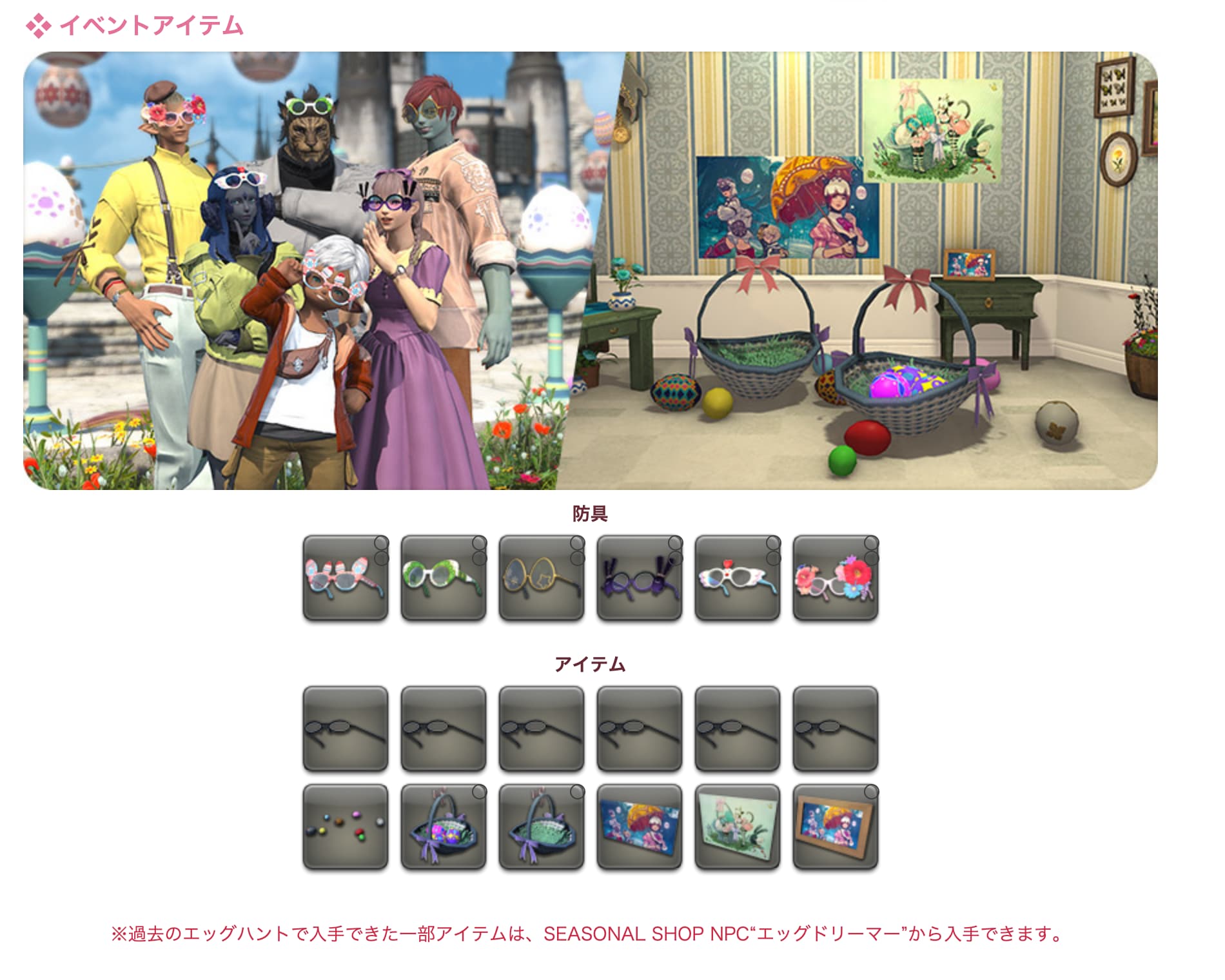 少女の夢から始まったお祭り「エッグハント」の季節が今年もやってきました! 各都市や冒険者居住区には色鮮やかなタマゴが飾り付けられ、お祭りを彩ります。
