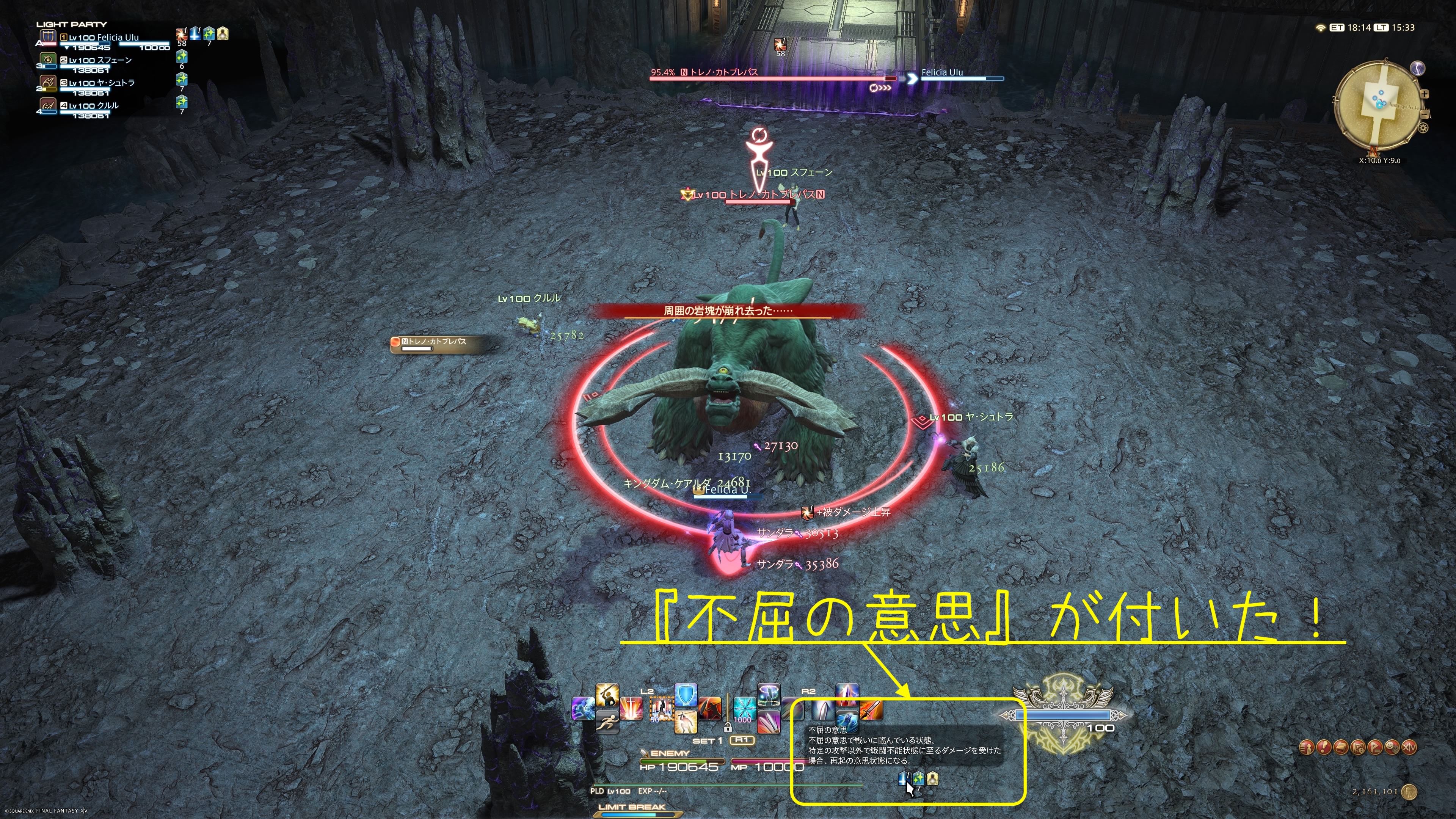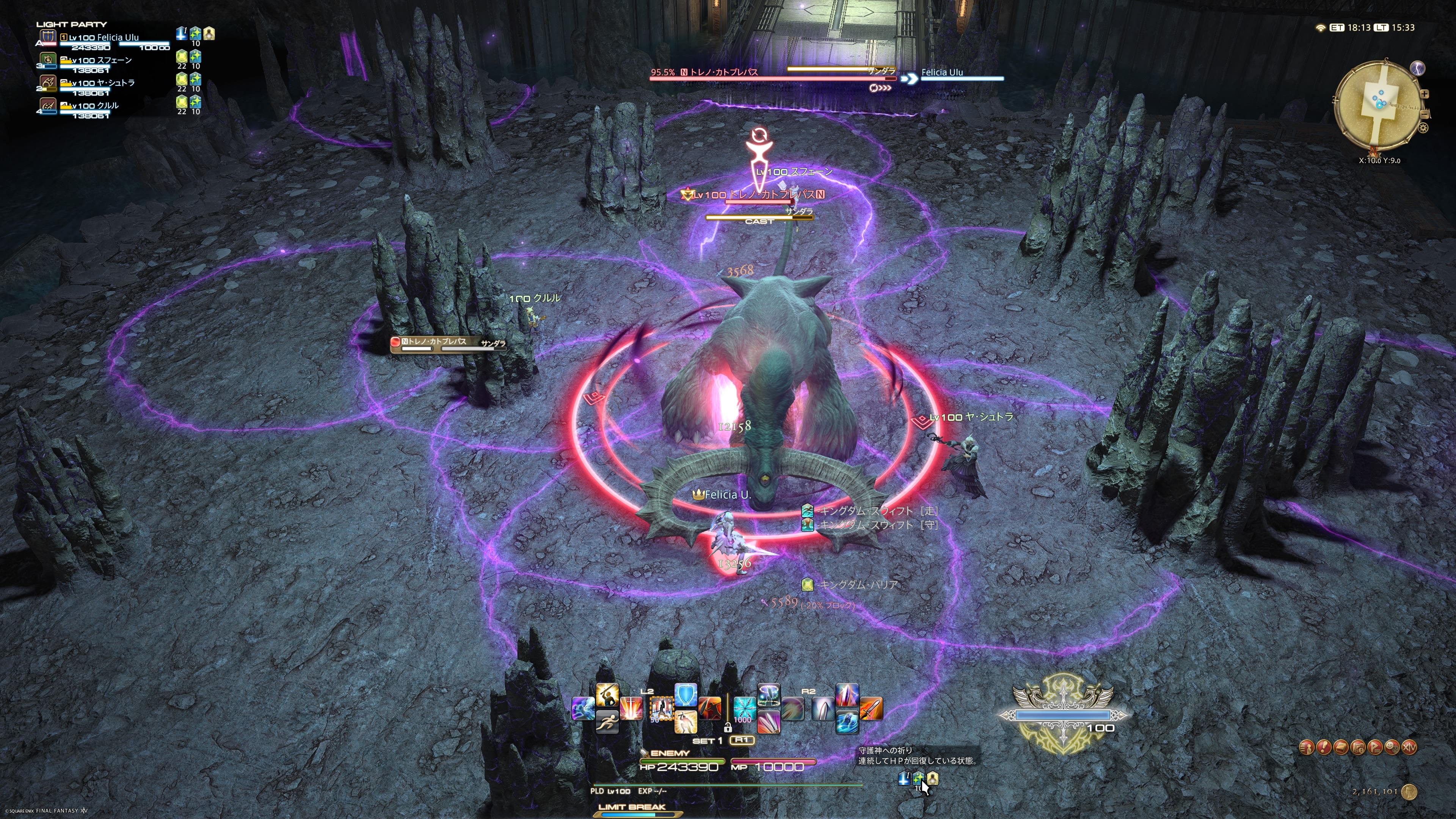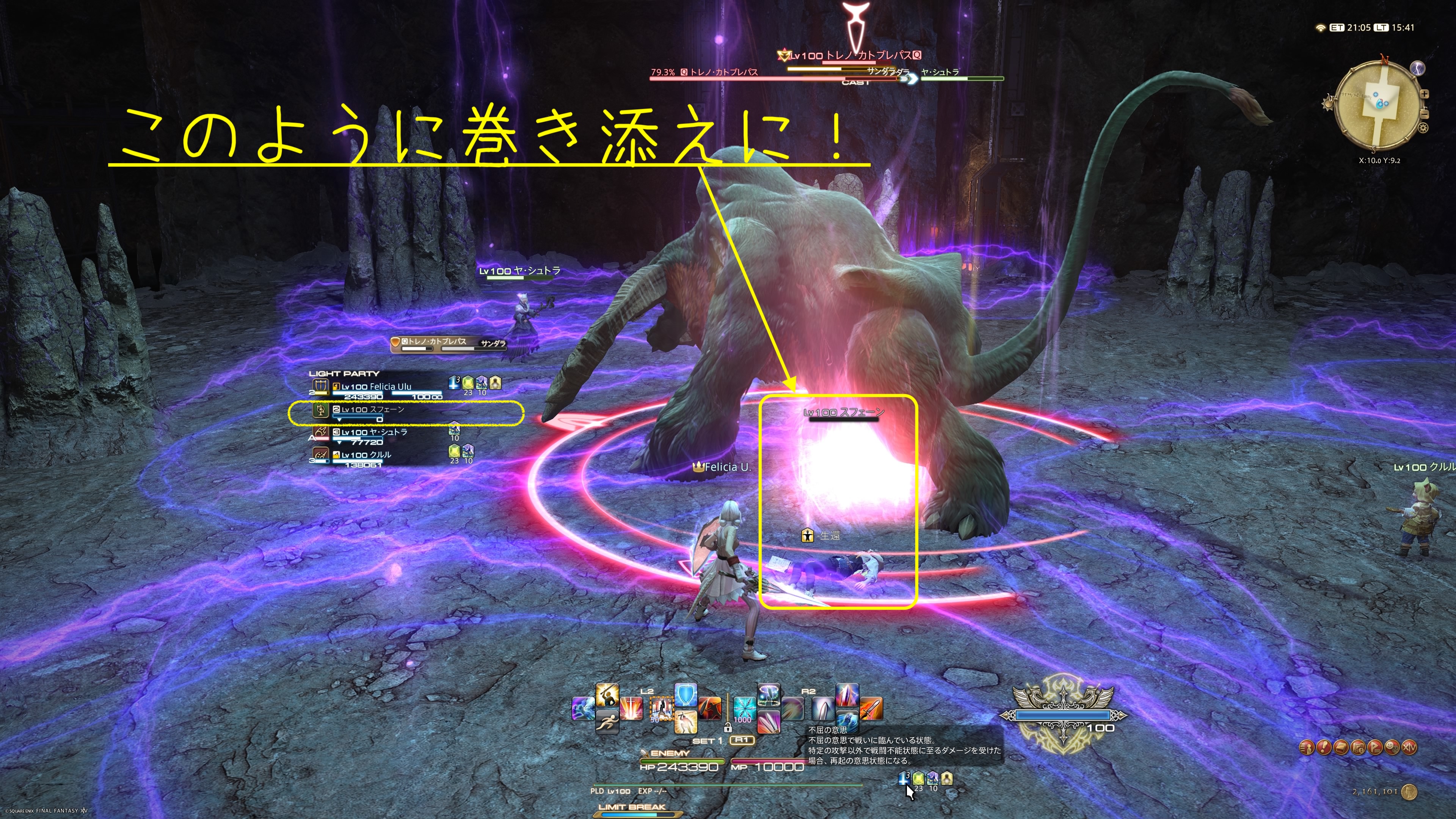 その後に外周でぐるぐる廻るエーテルが1つ増えます。ですが、避け方の基本は同じです。