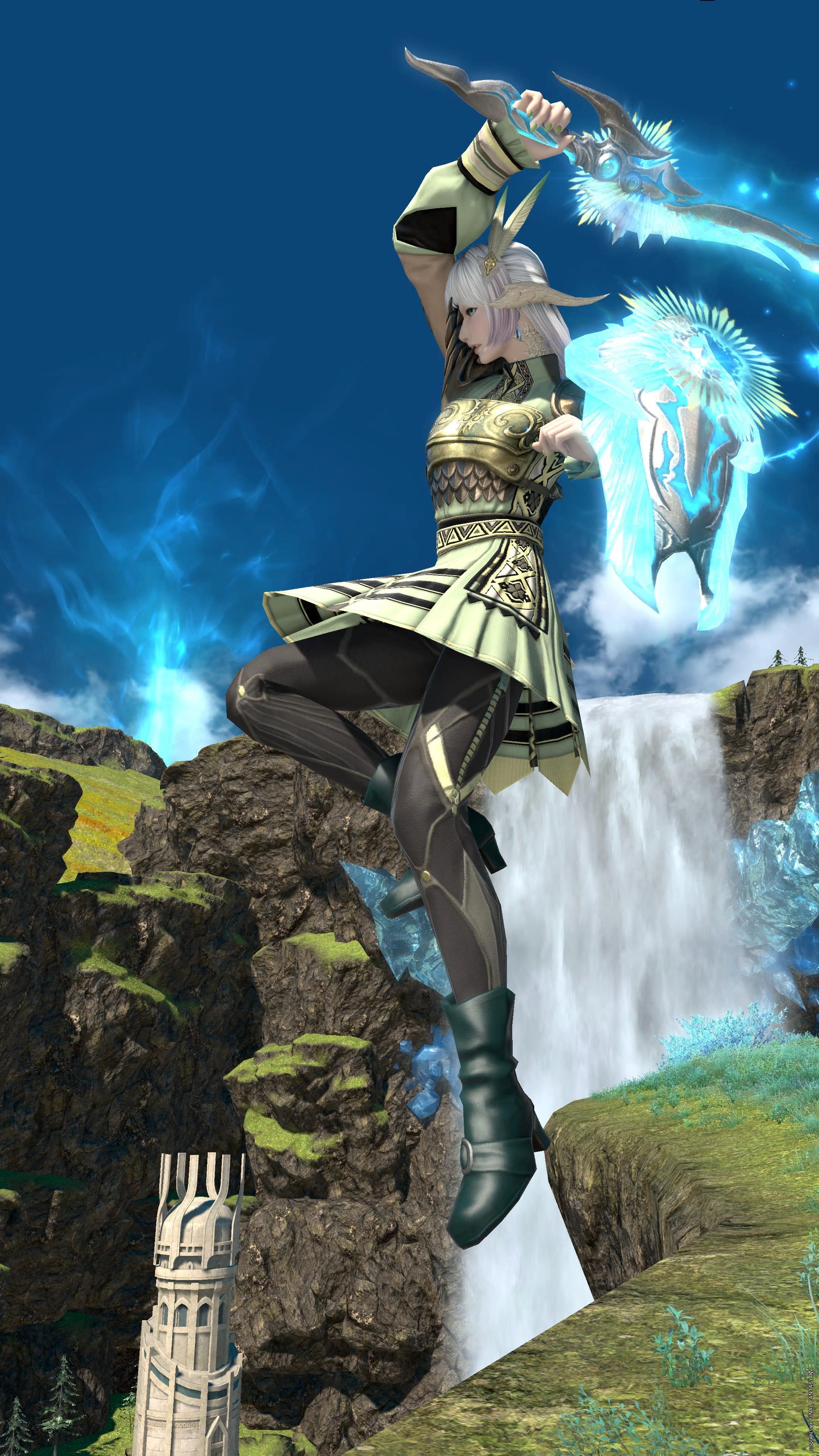 とは言っても、ナイトの場合は飛び上がるアクションが結構多い為、「サイオンズヒーラー・ハーフタイツ(極短パンツ)」を穿いています。でもこれは、あなたのジョブ次第です。