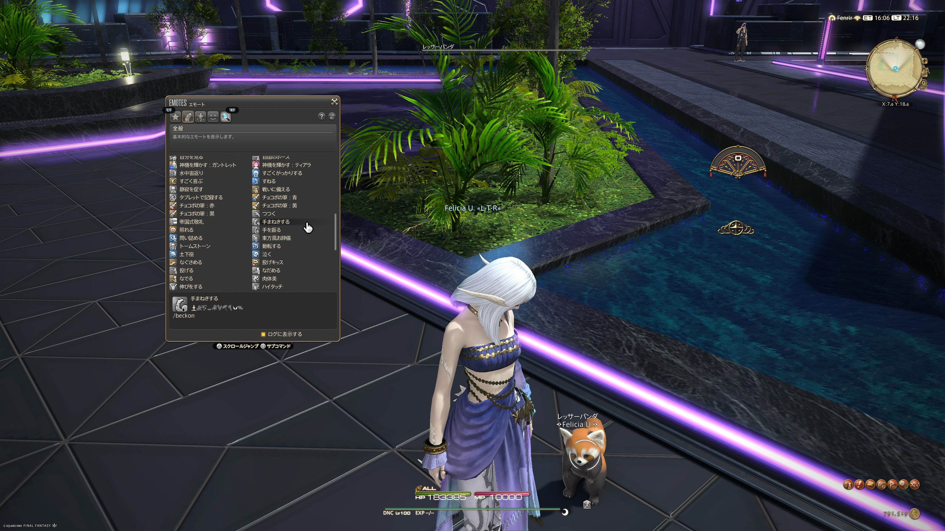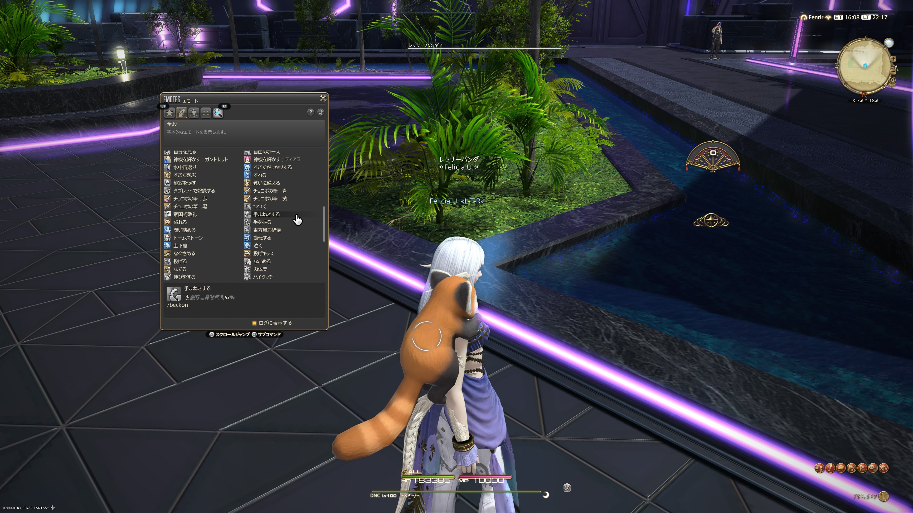 そこで、今すぐ乗せる方法ですが、エモートの「手まねきする」を使いましょう!