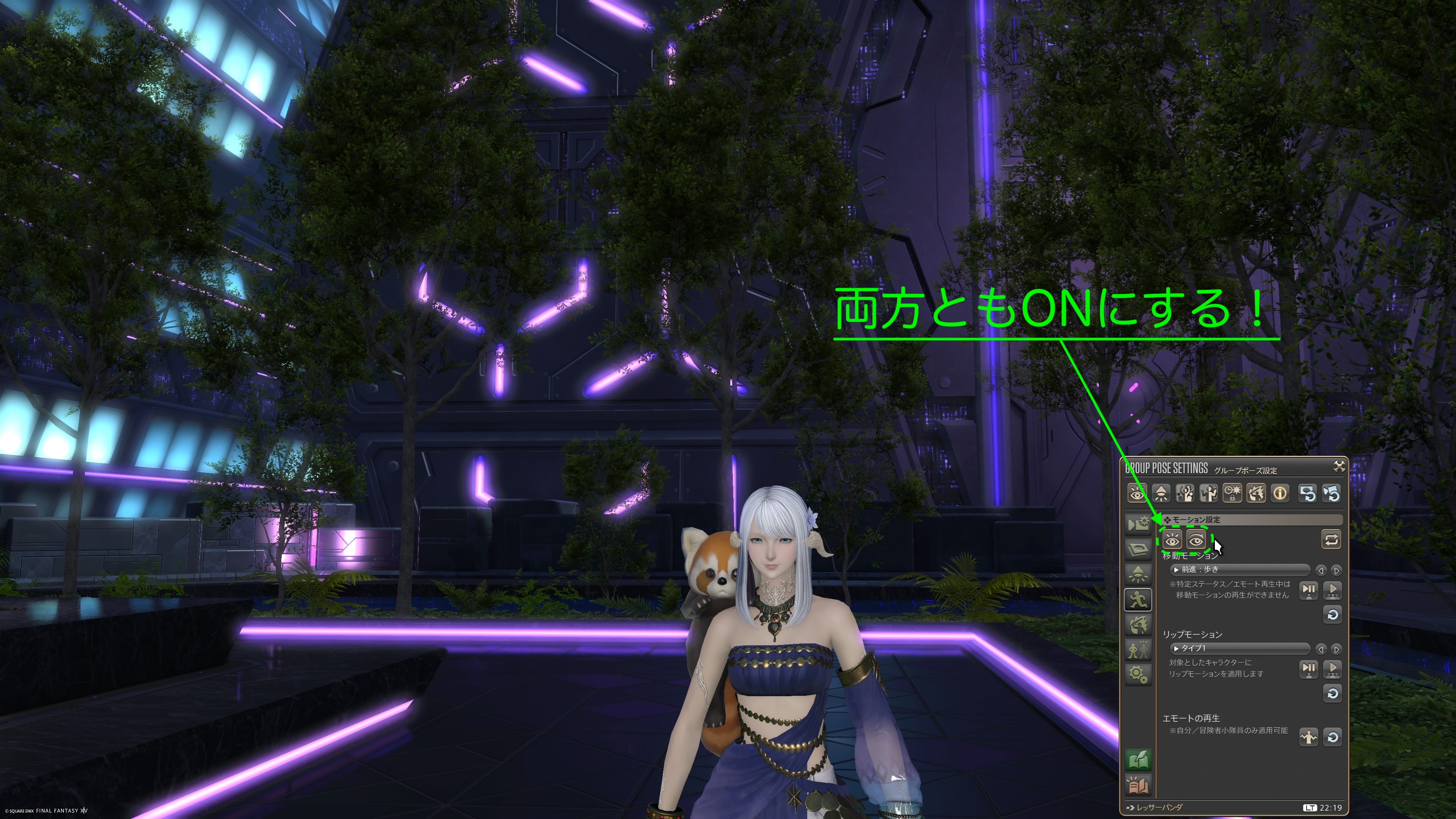 最初に自分のエモートを起動しておきましょう!