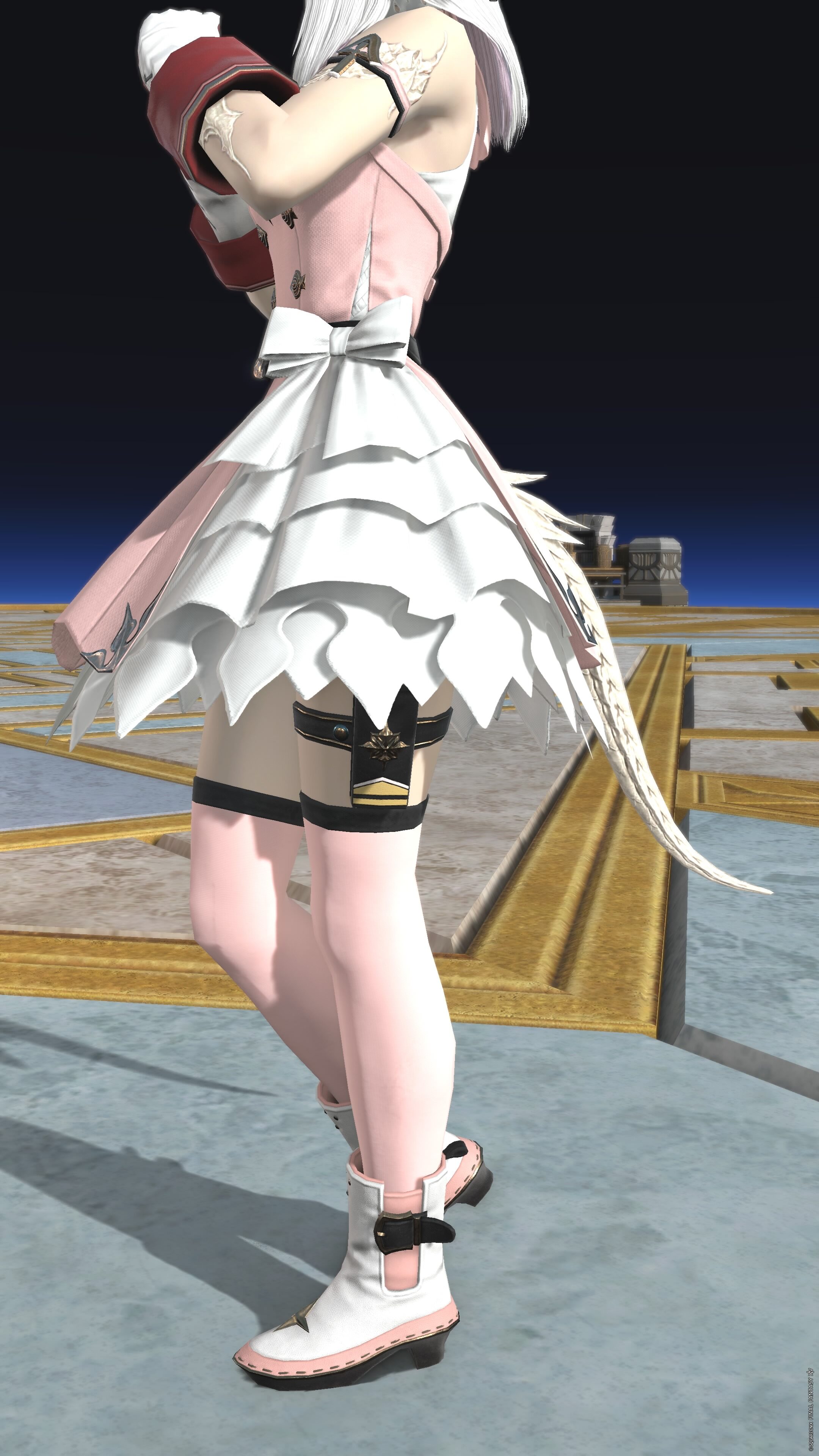 スカートの部分は、リボンがついたサイドの腰の辺りから裾にかけてまでがホワイトになっています。
