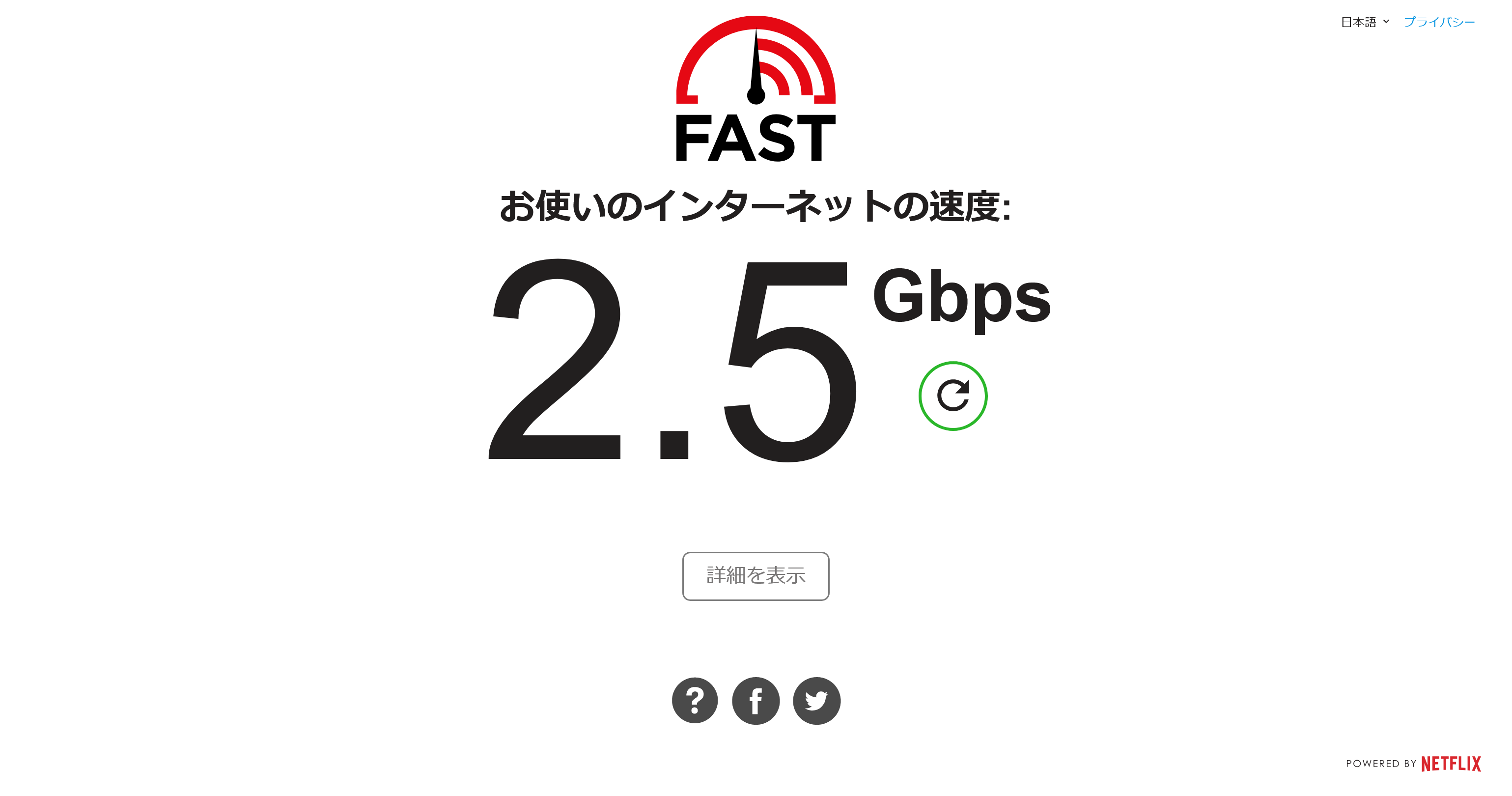 ここでも使っていますが、回線速度の計測サイトをご紹介しておきます。