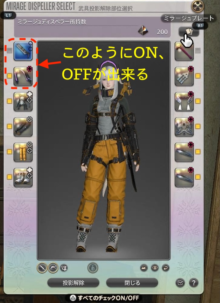 - 「ミラージュドレッサー」で保管済みの装備をミラプリしたい!