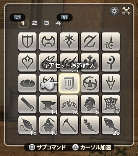 この『クイックパネル』を使うと「ジョブアイコン」をひとまとめに表示出来ます。