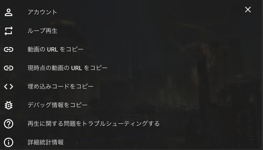 - 「Youtube」の再生画面で右クリックします。