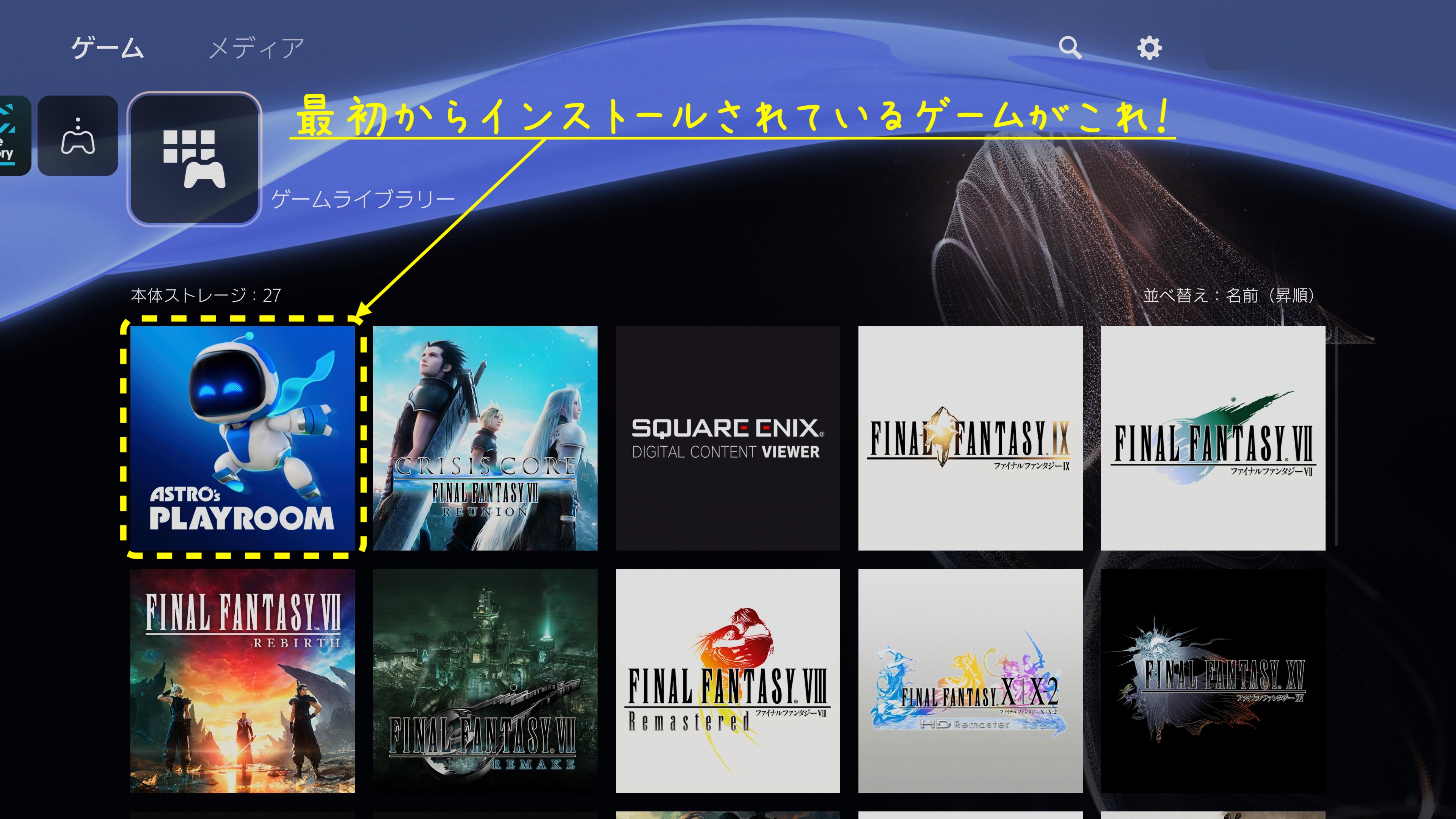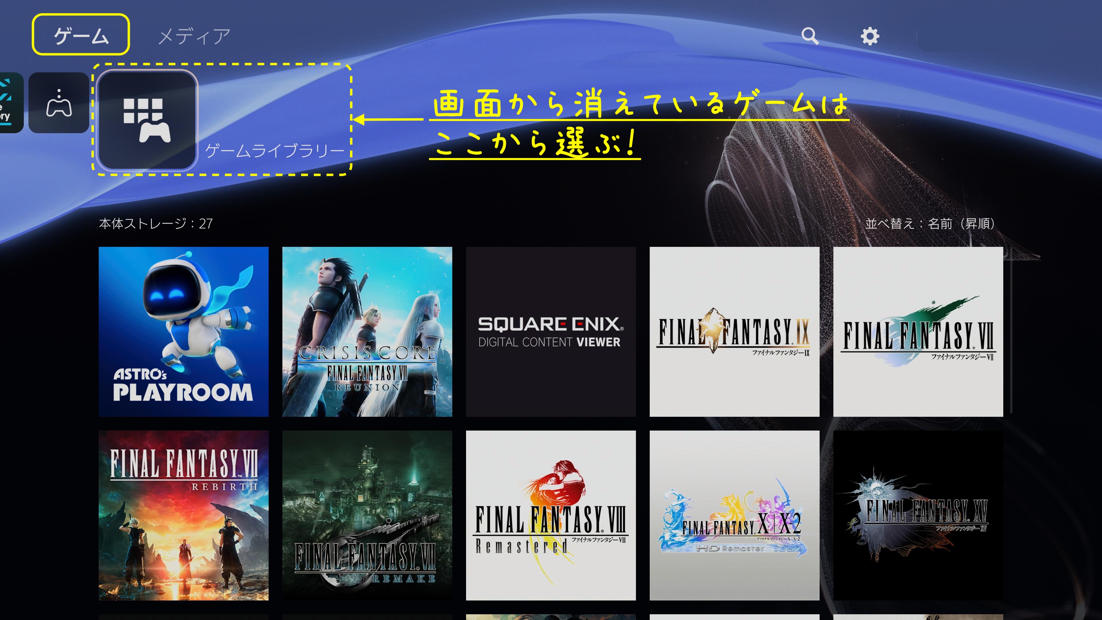 この場合は、「ゲームライブラリー」のところを見てみて下さい。