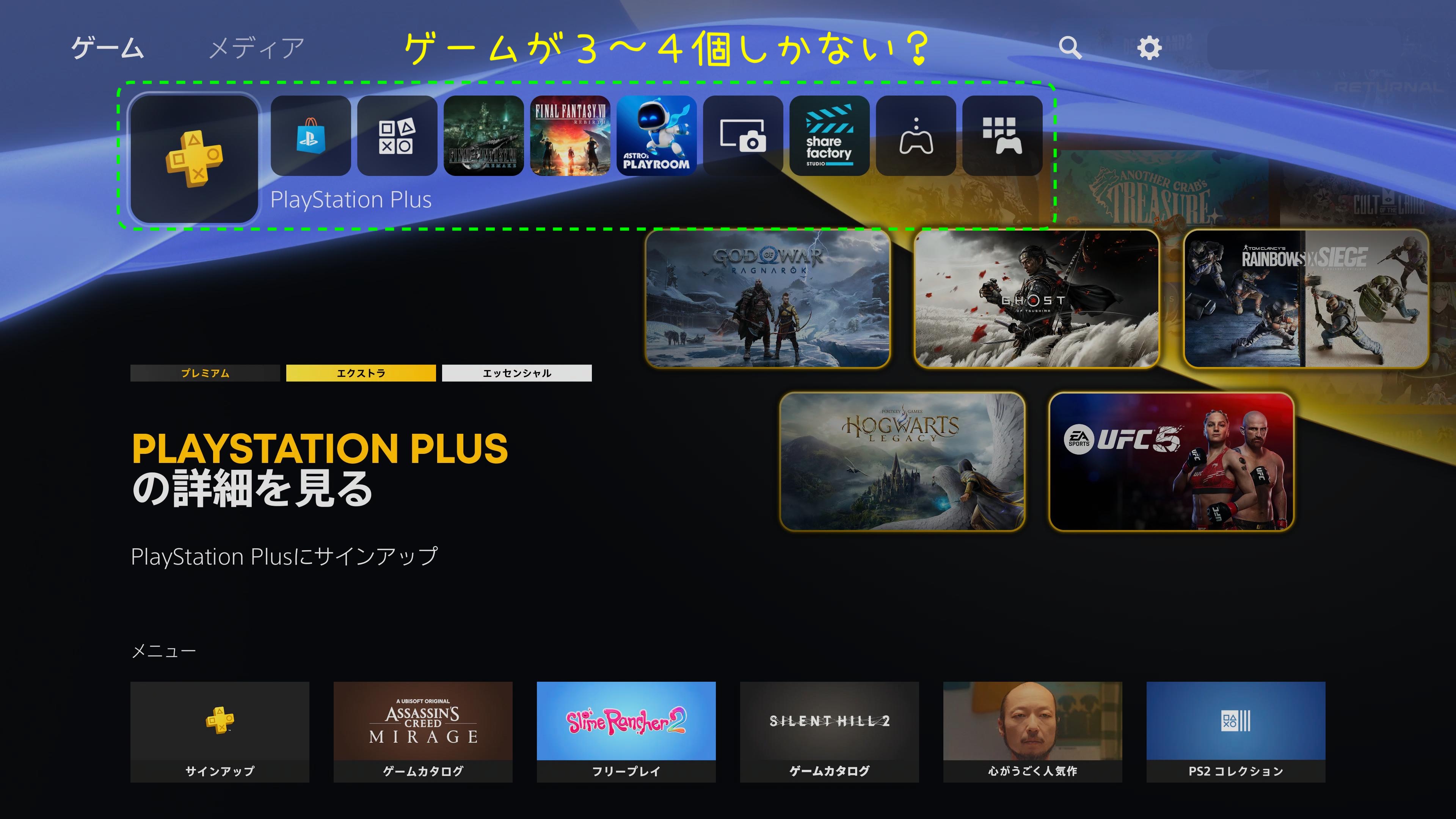 そうです、表示されているゲームの数がいやに少なくなっているのです。