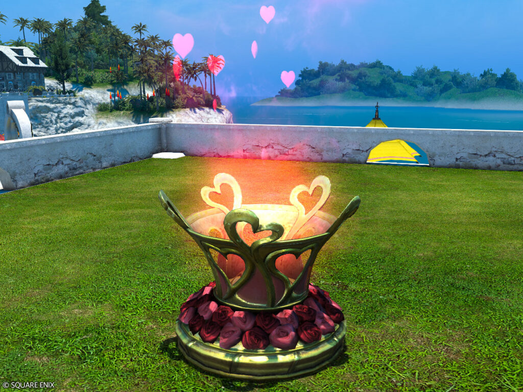 薔薇とハートをあしらった台座からハートの炎が燃え上がっています。